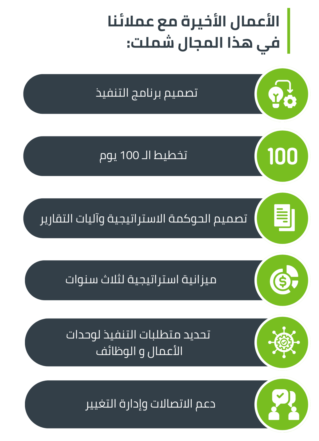 – حوكمة وهيكل تنظيمي يمكّنان من التنفيذ الفوري والتخطيط للأولويات والتعاون الفعّال